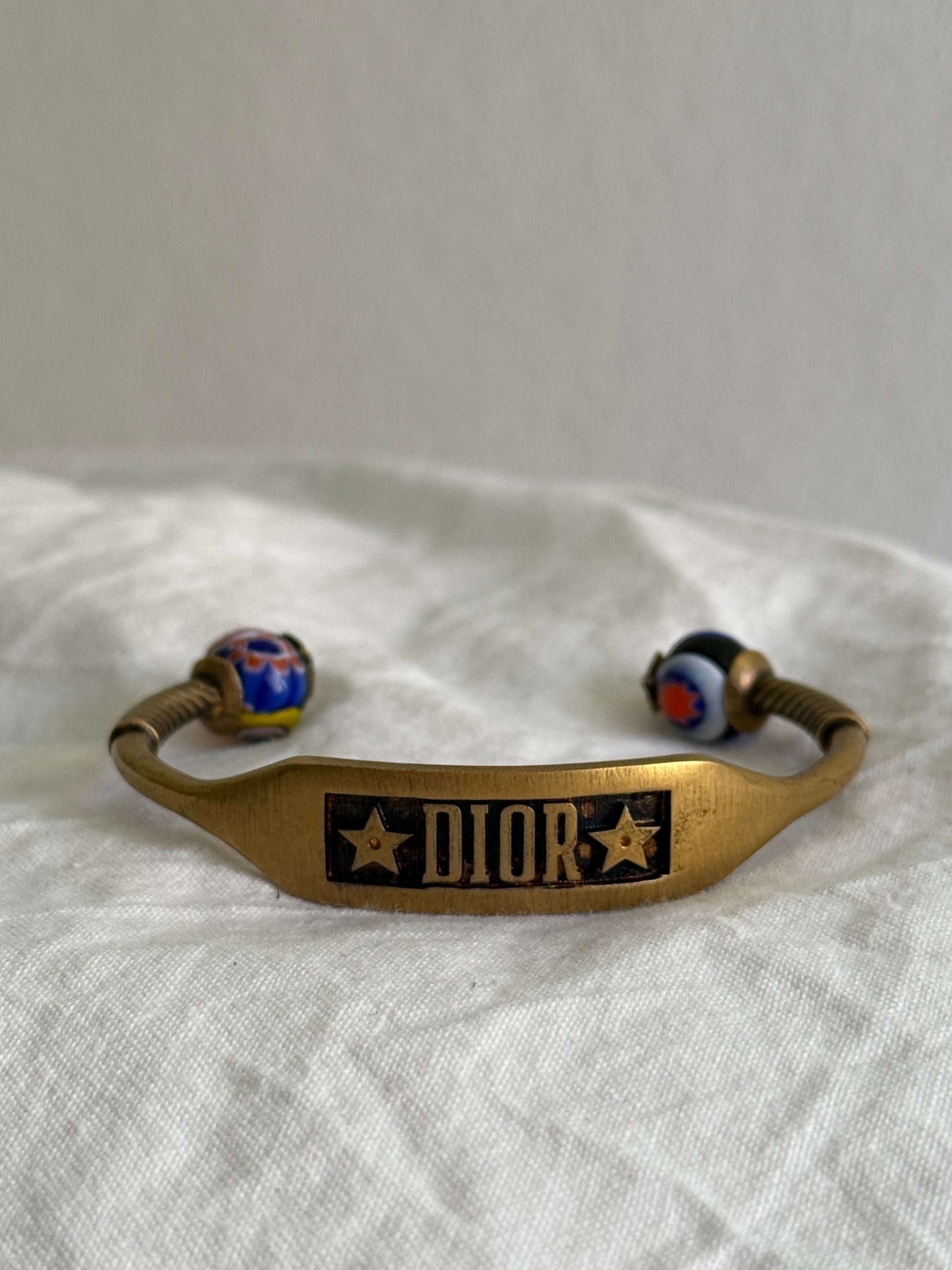 Dior Logo Cuff Bracelet With Star Detail in Antique Gold-Finish Metal