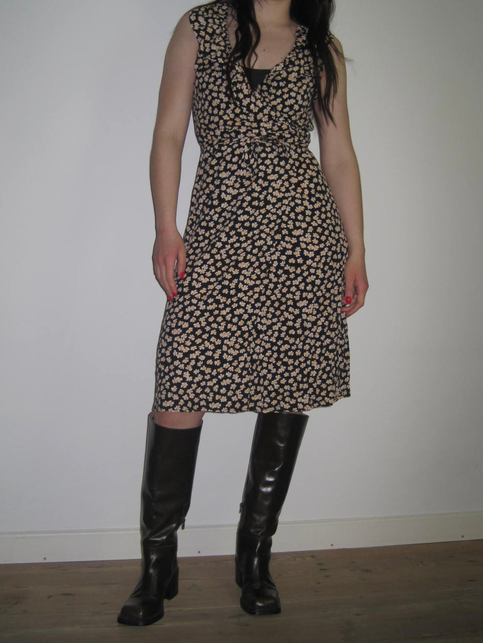 Rouje Floral Wrap Midi Dress with Soft Yellow Ditsy Print and Defined Waistband
