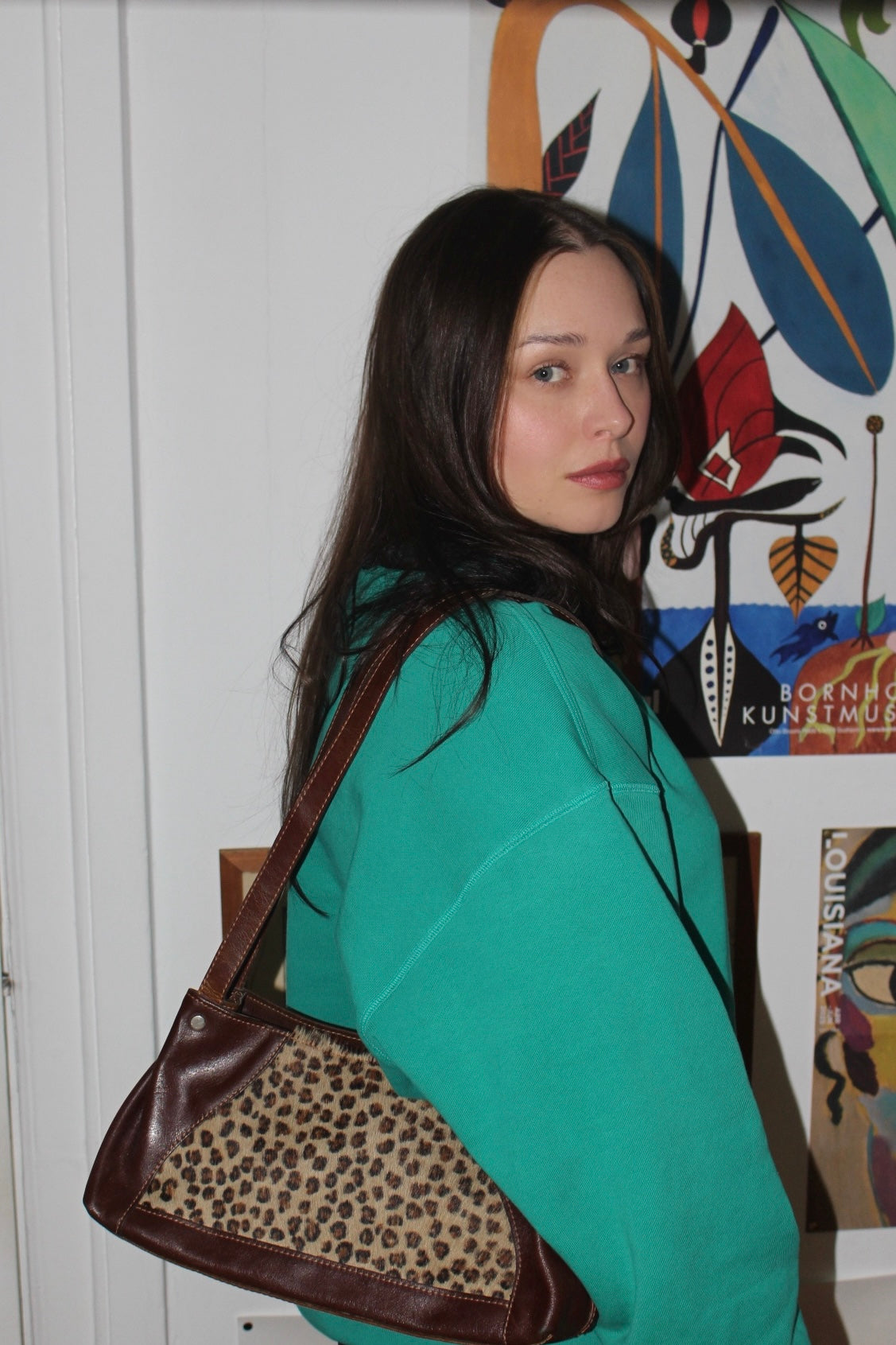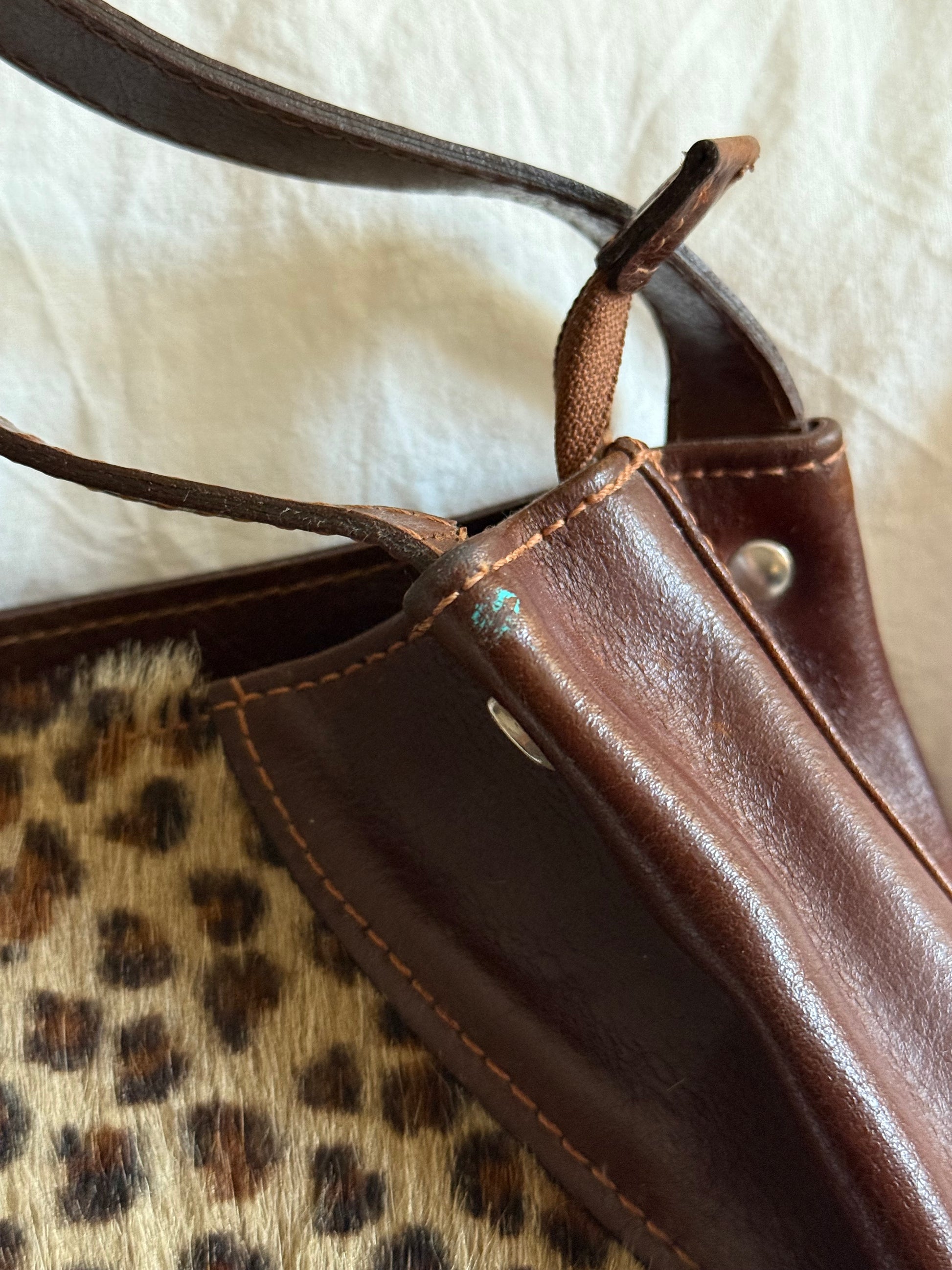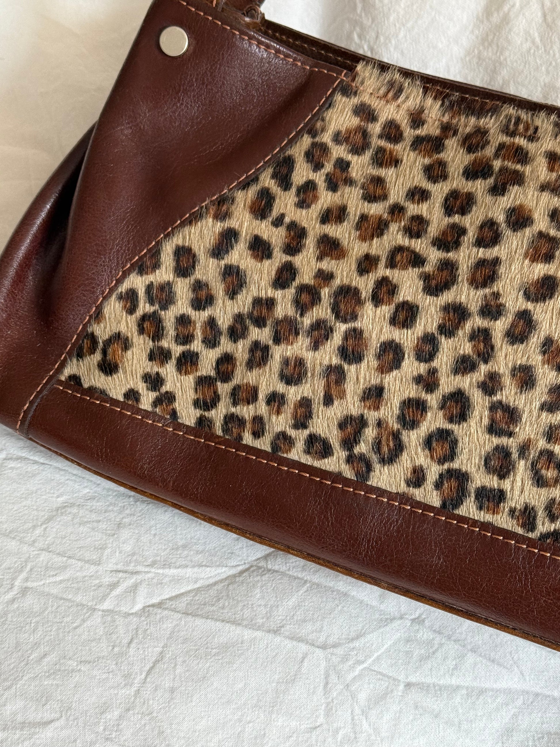 Vintage 90s Leopard Pony Hair Leather Shoulder Bag