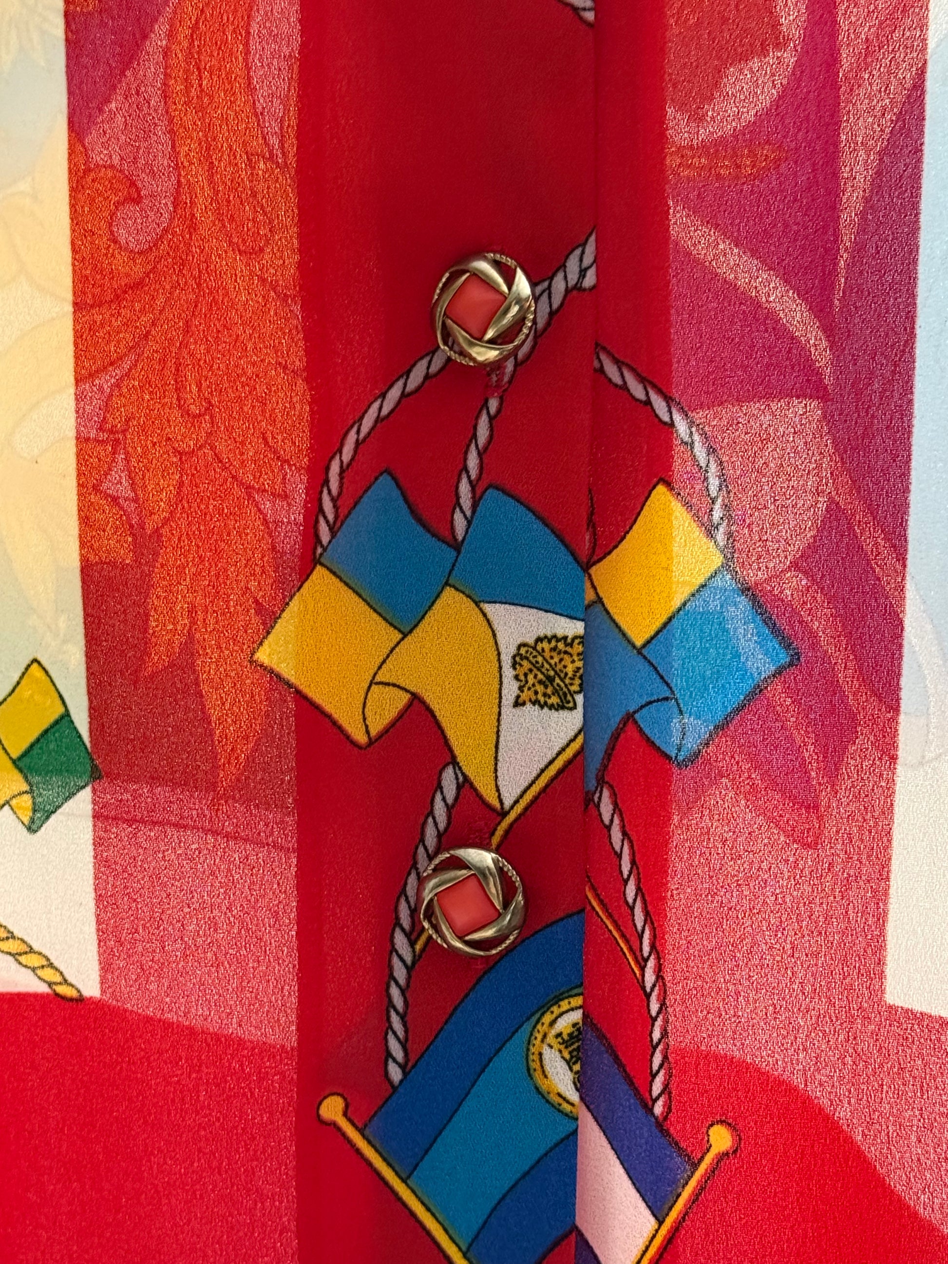 Vintage Flag Print Button Up Blouse