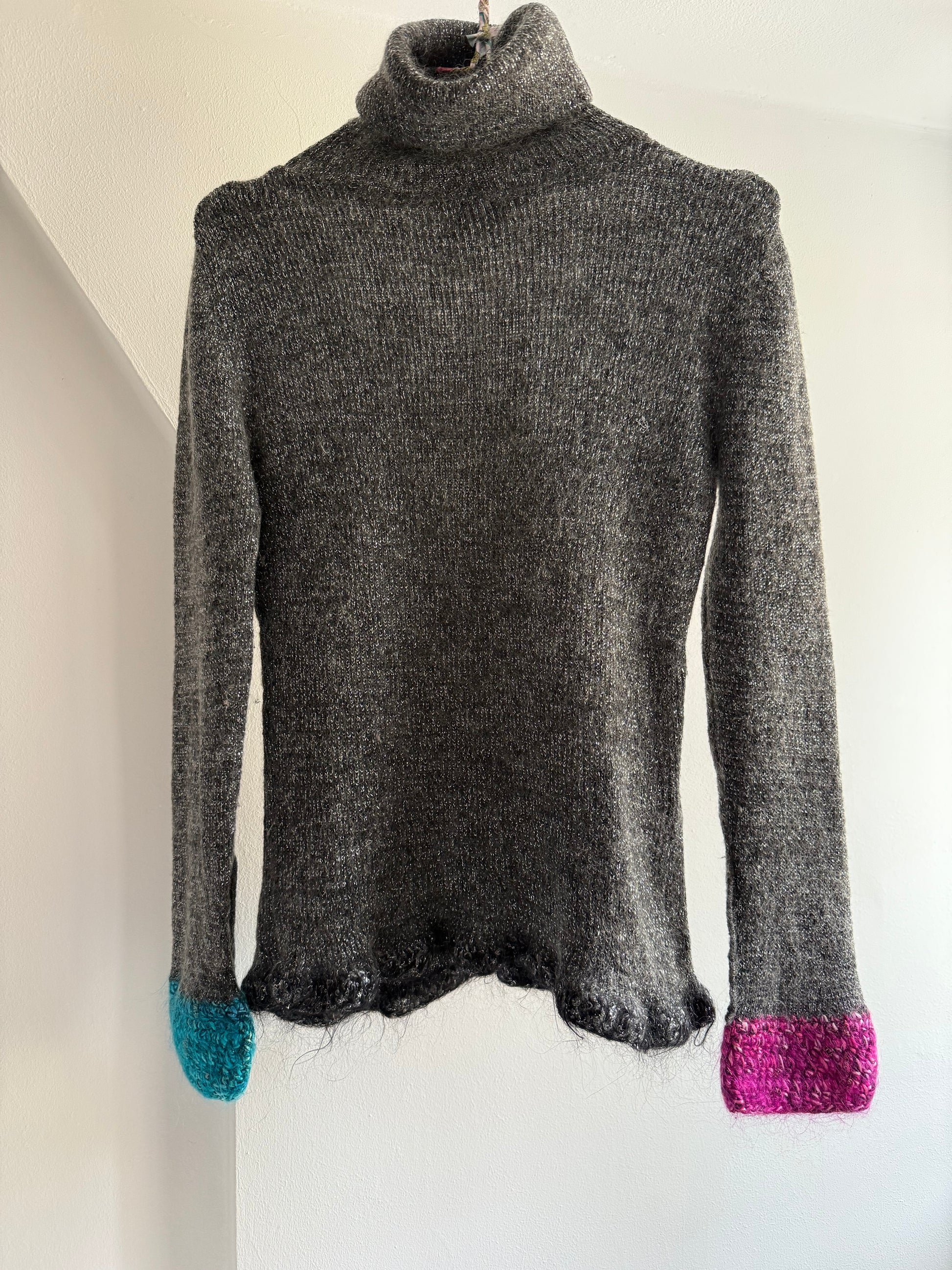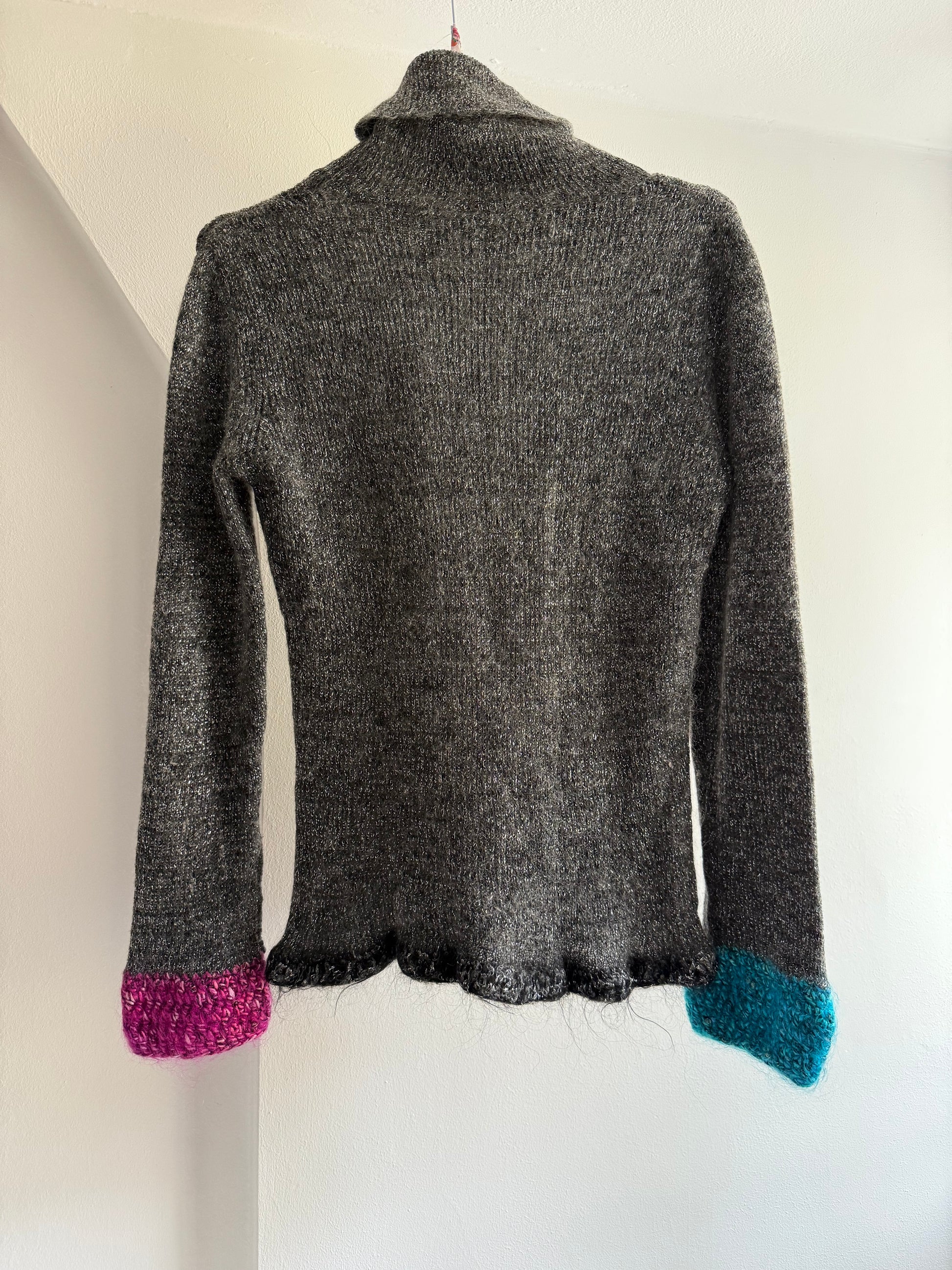 Vintage Mohair Blend Glitter Top with Pink and Blue Knitted Details on the Sleeves