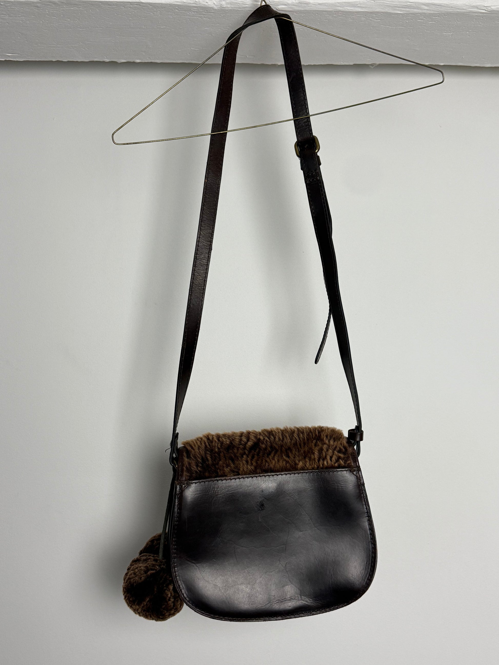 Vintage Patricia Nash Crossbody Bag in Laser Cut Sherpa with Pom Pom Detail
