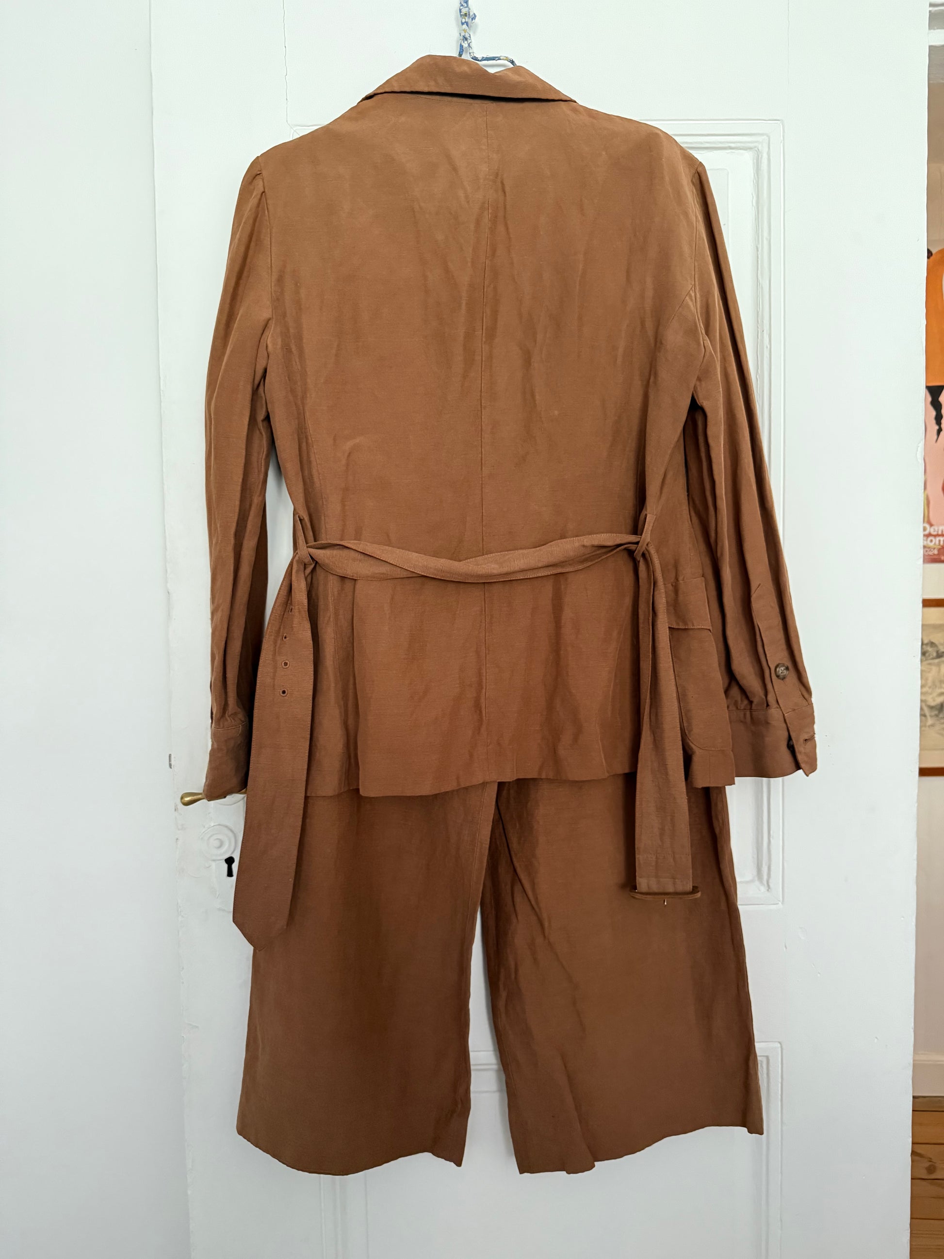 Vintage Ralph Lauren Cinnamon Silk and Linen Blazer and Wide Leg Trousers Set