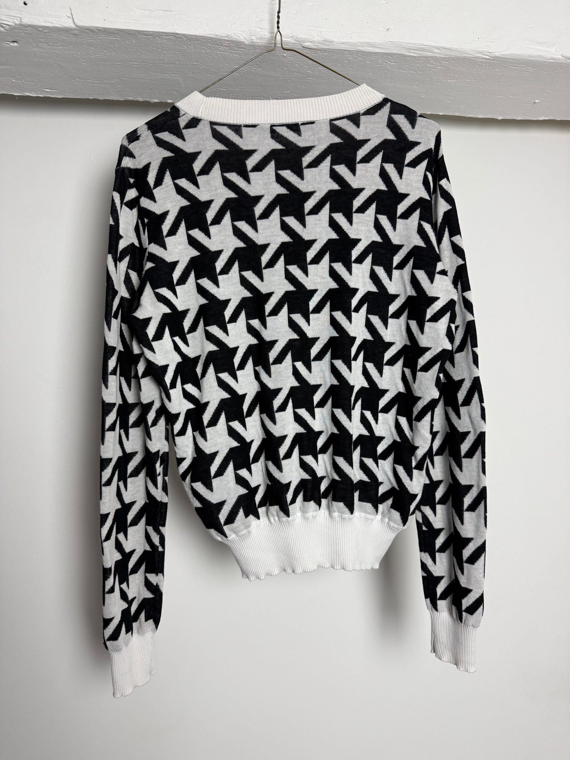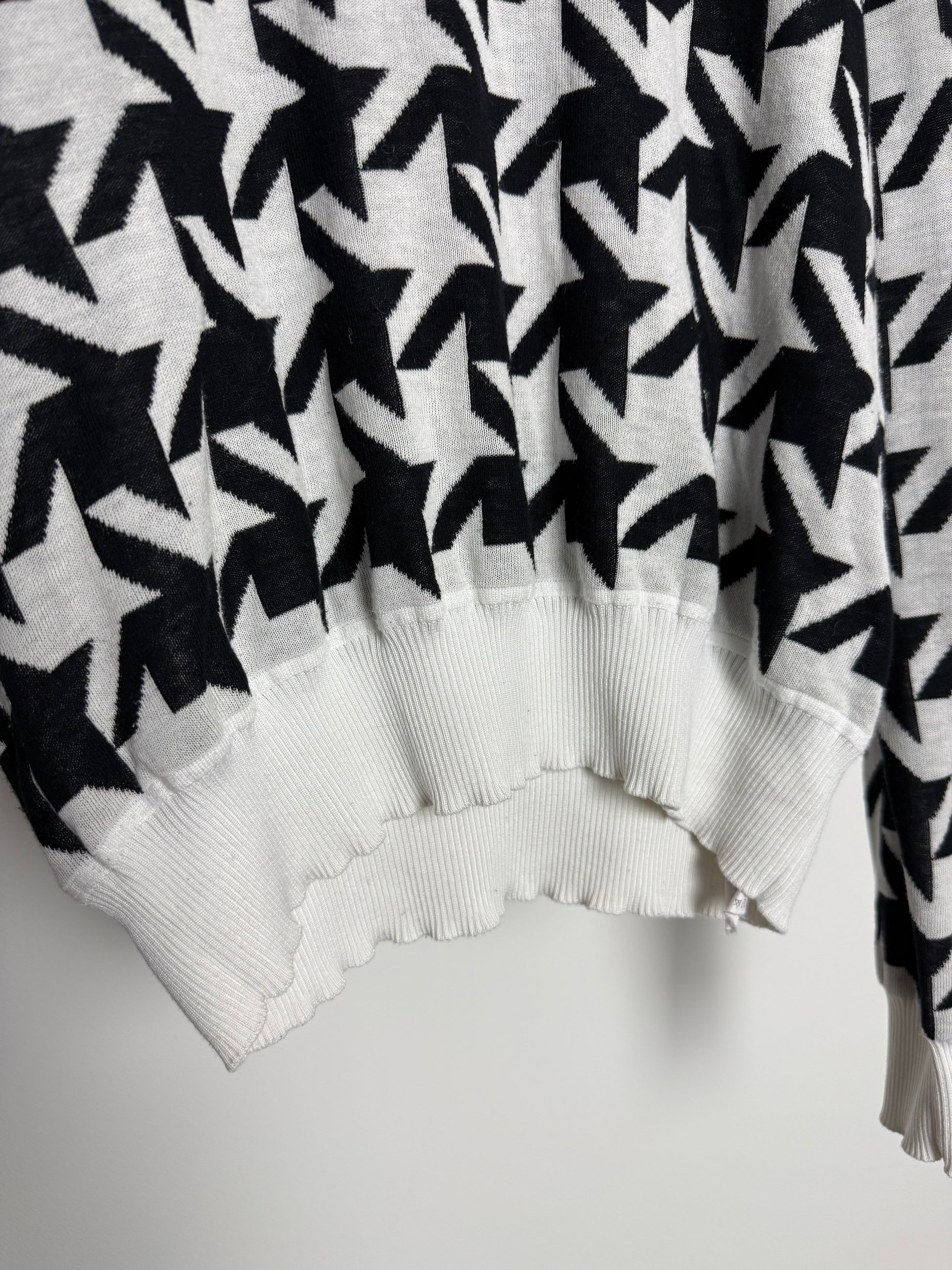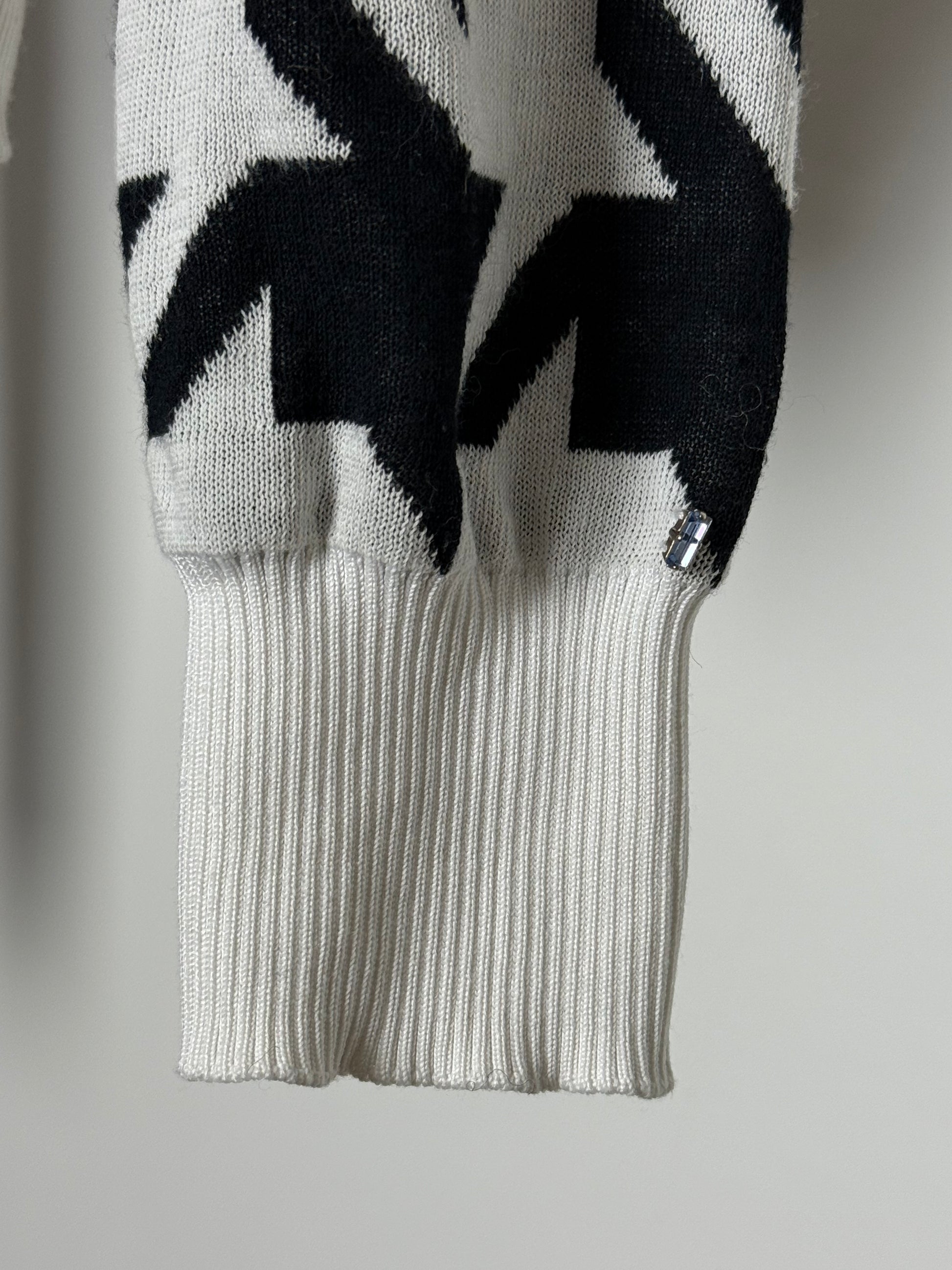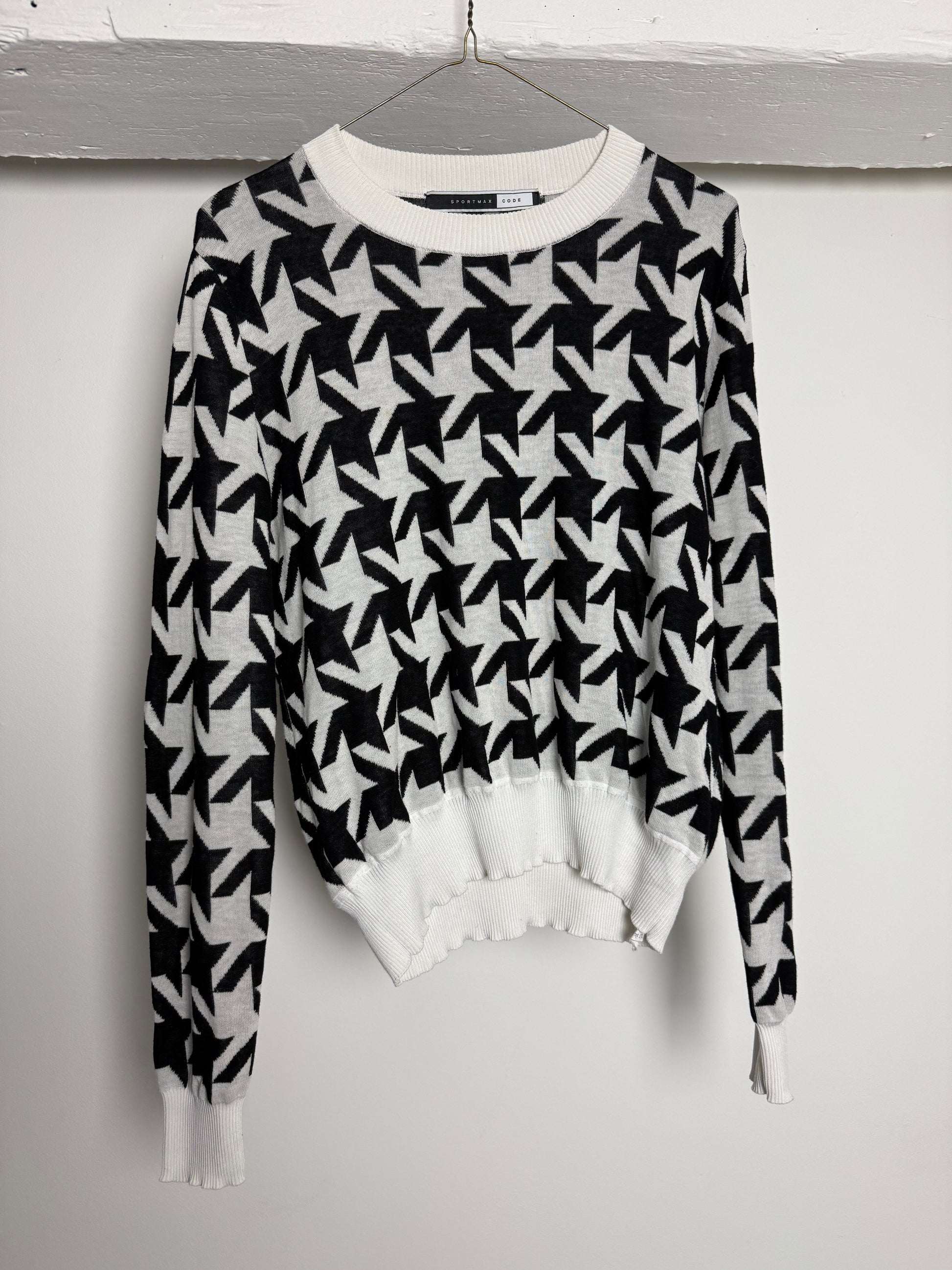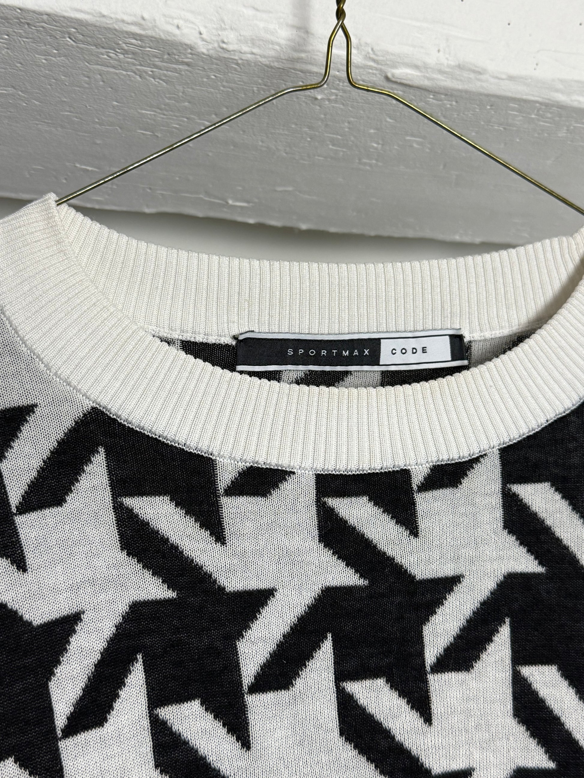 Vintage Sportmax Code Black and White Patterned Knit With Cropped Silhouette and Graphic Print
