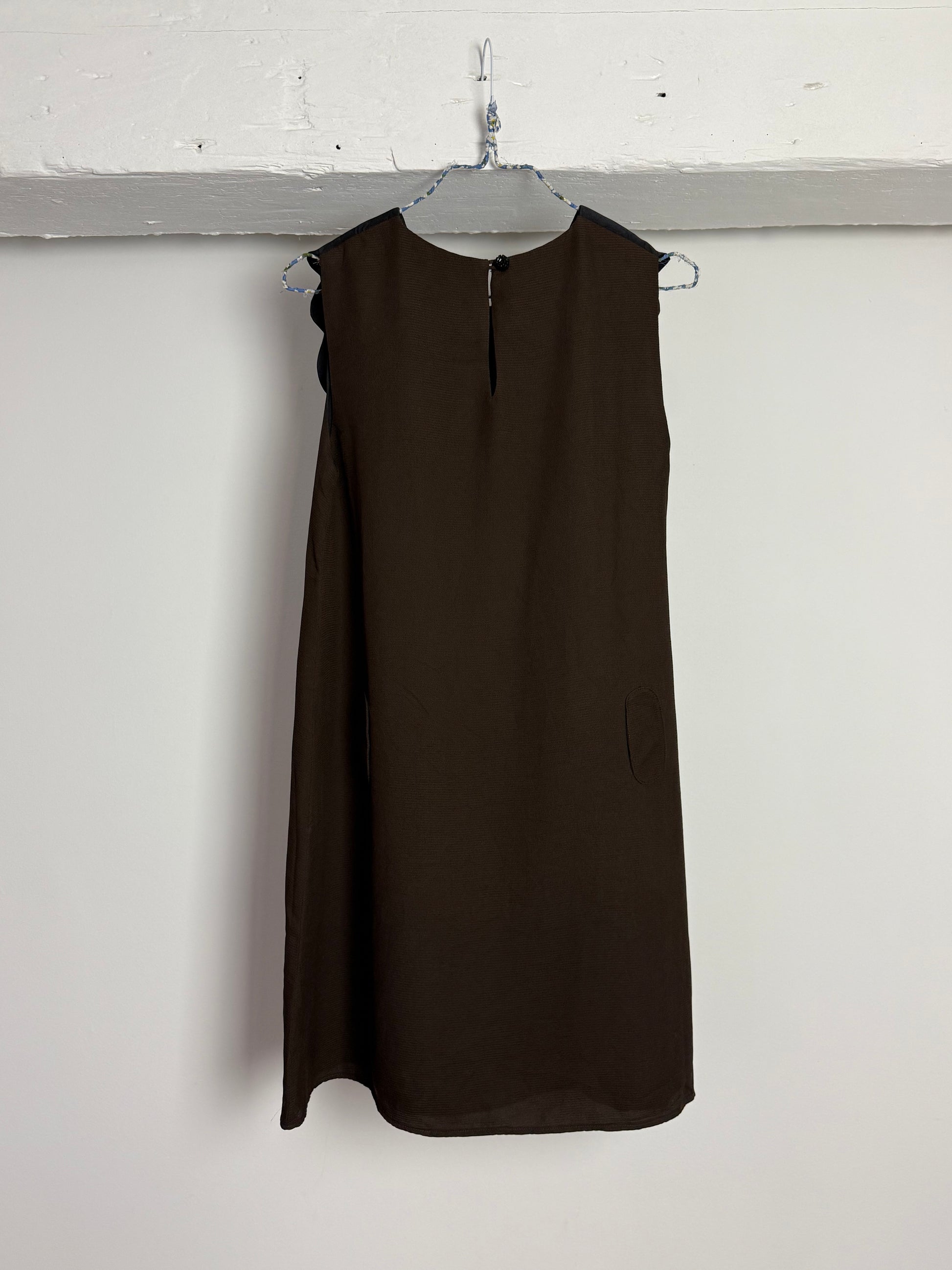 Vintage Wayne Sleeveless Silk Dress with Scalloped Collar and Minimalist Silhouette
