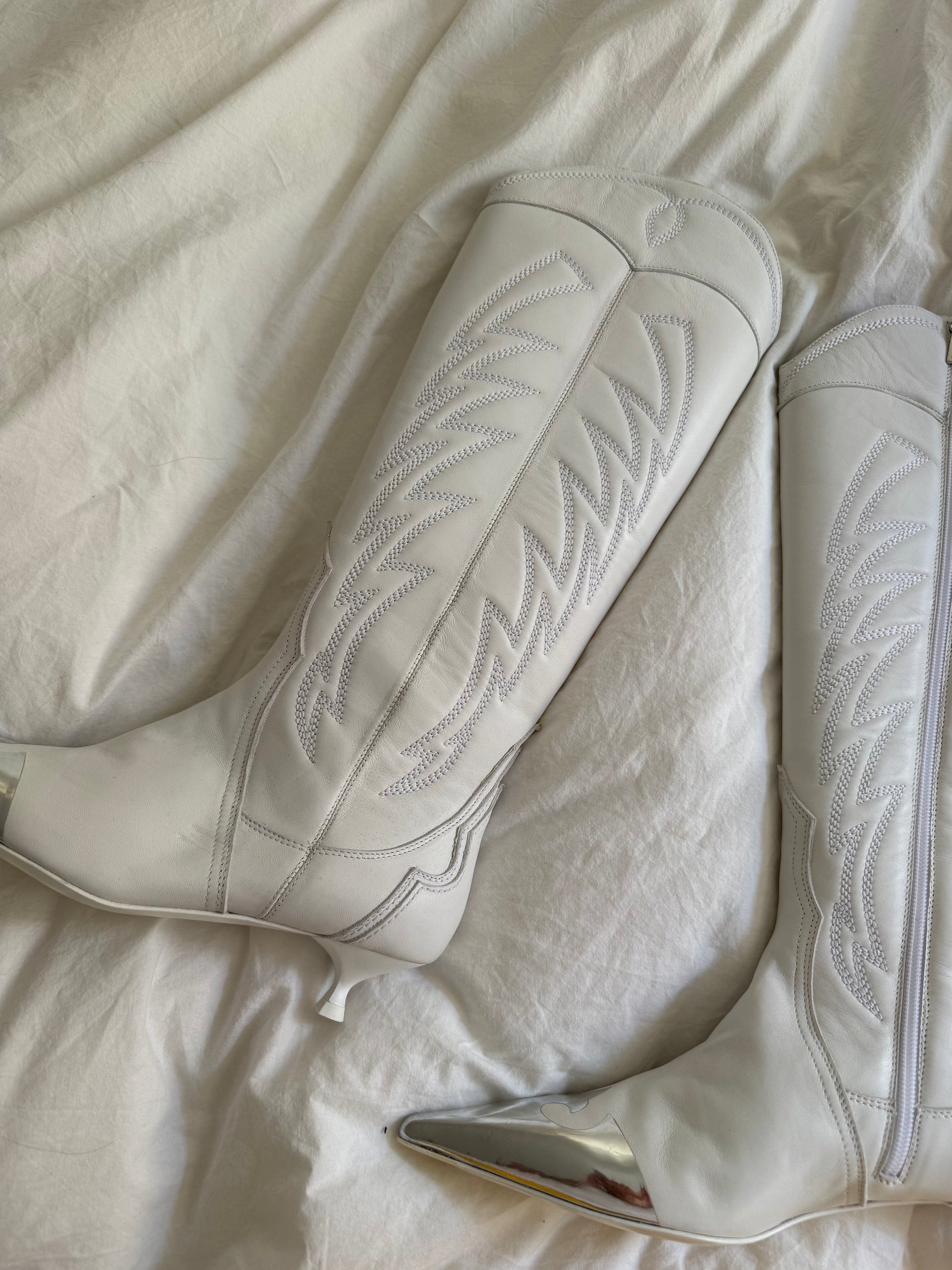 AGL Kristen Mcmenamy White Leather Cowboy Boots