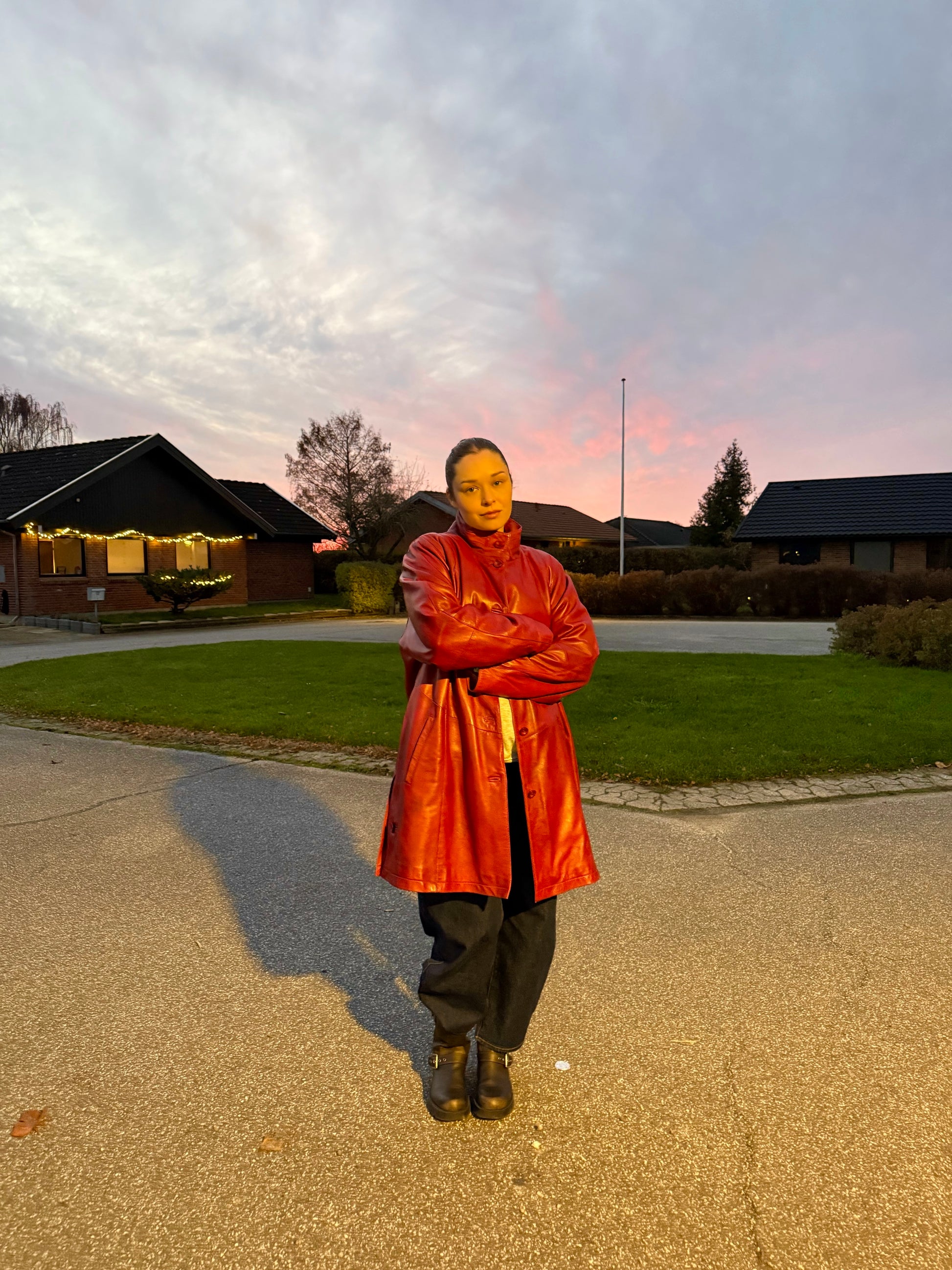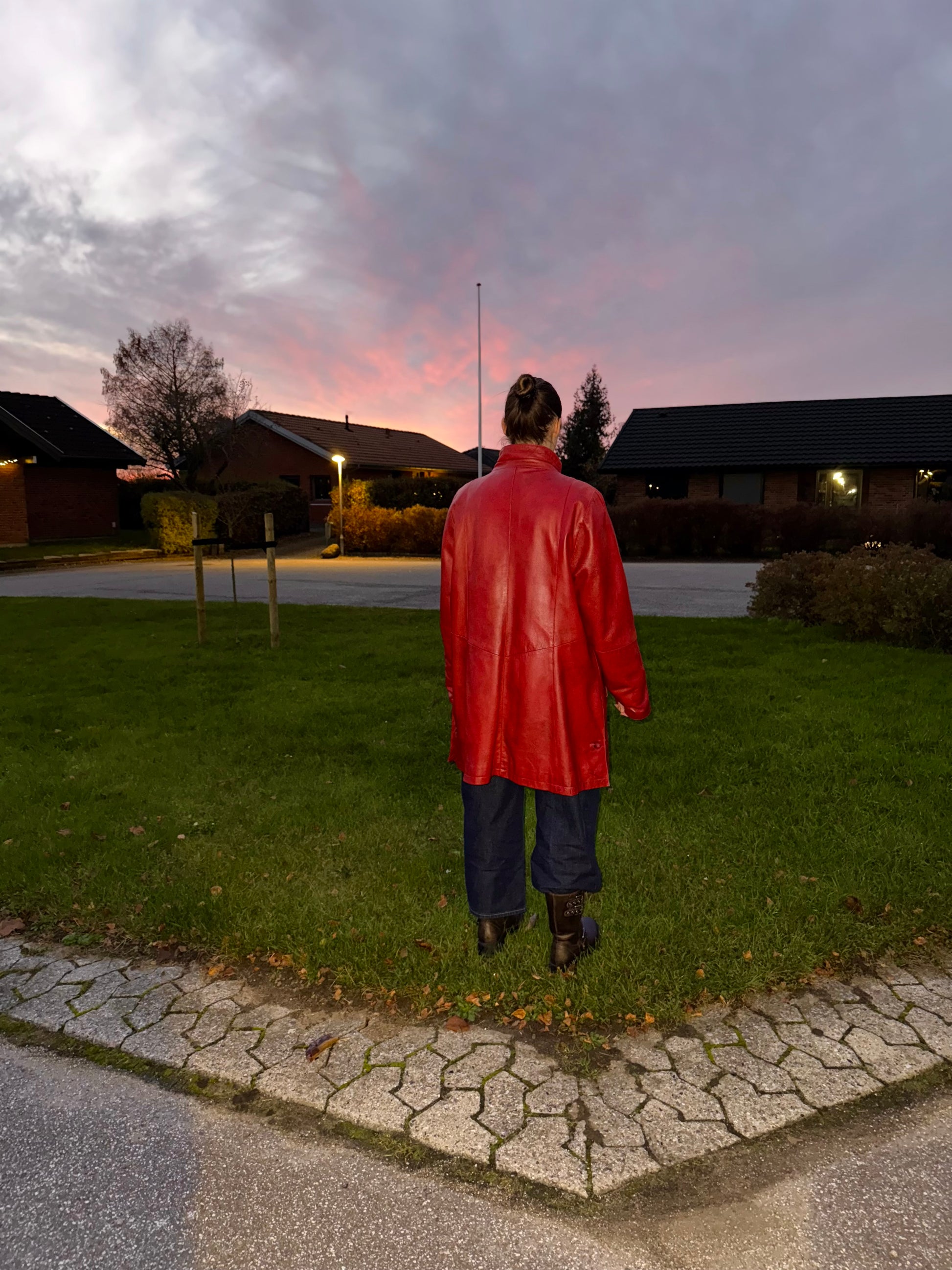 Vintage Red Long Leather Jacket
